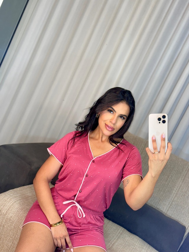 Pijama delicado e confortável, com estampa charmosa e modelagem que veste super bem. Confeccionado em tecido 67% poliéster e 33% viscose, une durabilidade, leveza e toque macio na pele. A blusa com botões e o short com amarração garantem praticidade e um caimento perfeito para suas noites de descanso.